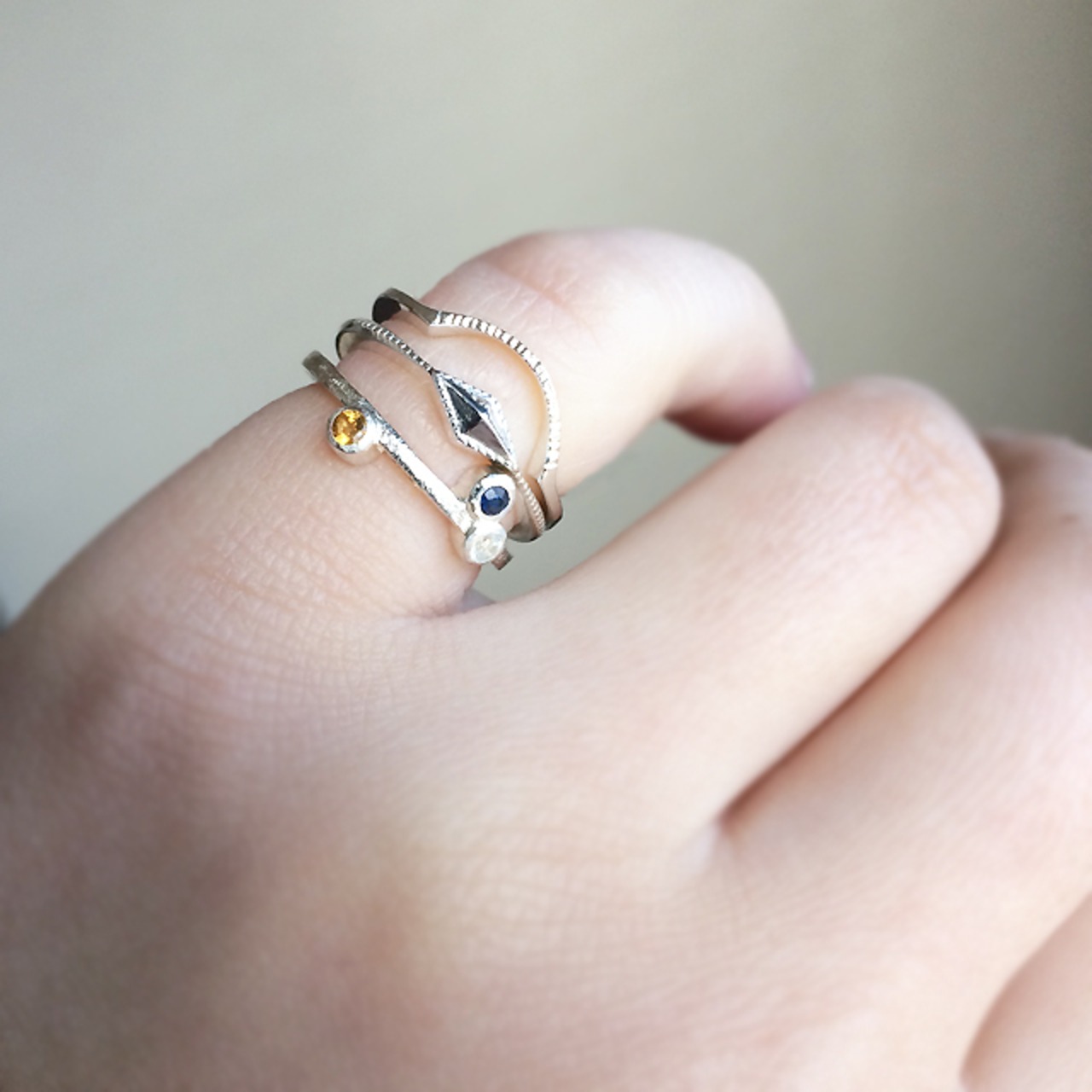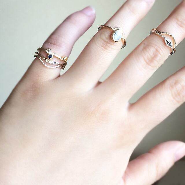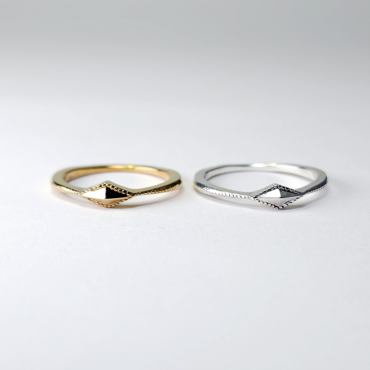ひし形のデザインのシルバーが輝き指先を美しく引き立てます。日常の装いにちょっとした華やかさをプラスしてくれるはずです。他のシリーズ商品との組み合わせも楽しめるので、お気に入りのコーディネートに欠かせないアイテムです。
