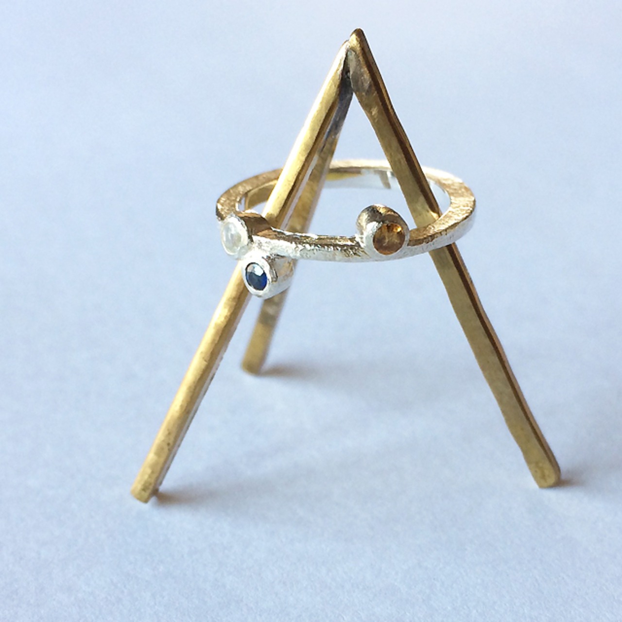 三色の宝石の輝きが手元を華やかに彩ります。お洒落なあなたにぴったりのルックスを持ちながら、日常使いできる実用性も兼ね備えています。